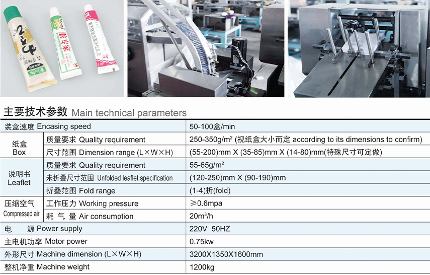 本產(chǎn)品是我公司結(jié)合國外裝盒機(jī)的先進(jìn)技術(shù)及根據(jù)國內(nèi)制藥行業(yè)的實際情況而研發(fā)的擁有新型、具有先進(jìn)的多功能自動裝盒機(jī),是機(jī)、電、氣光一體化的高科技產(chǎn)品。本產(chǎn)品適用于鋁塑藥板、瓶、口服液、鋁/塑管、面膜、及各類電子、日用品等以及相類似物品的裝盒包裝,具有自動完成使用說明書的折疊,紙盒自動打開、物品裝盒、打印批號、封盒等功能,該機(jī)可以單獨(dú)使用亦可以與其他設(shè)備聯(lián)動使用,形成聯(lián)動生產(chǎn)線。