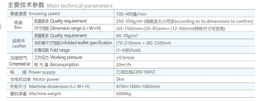 ■如果沒有物料、說明書和紙盒都不會自動下料;如果有物料、說明書和紙盒都會自動下料。■該機(jī)可根據(jù)用戶要求,更換多種規(guī)格包裝,調(diào)節(jié)及調(diào)試簡便,即適用于大批量單一規(guī)格的生產(chǎn),同時又可以滿足多規(guī)格的生產(chǎn)。