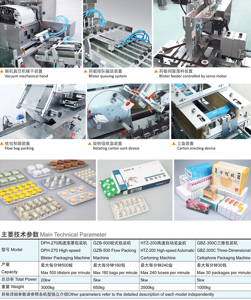 DPH-GZB-HTZ-GBZ 全自動高速泡罩、枕式、裝盒、三維包裝生產聯動線